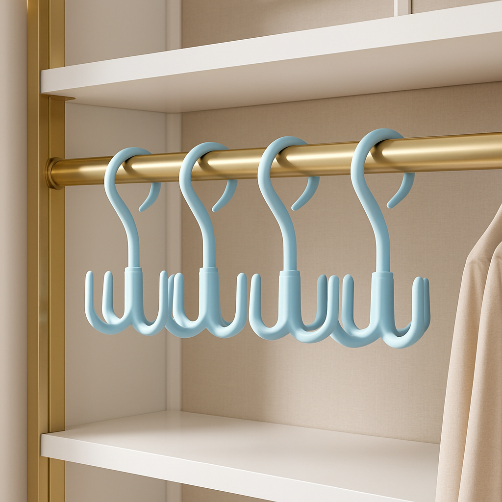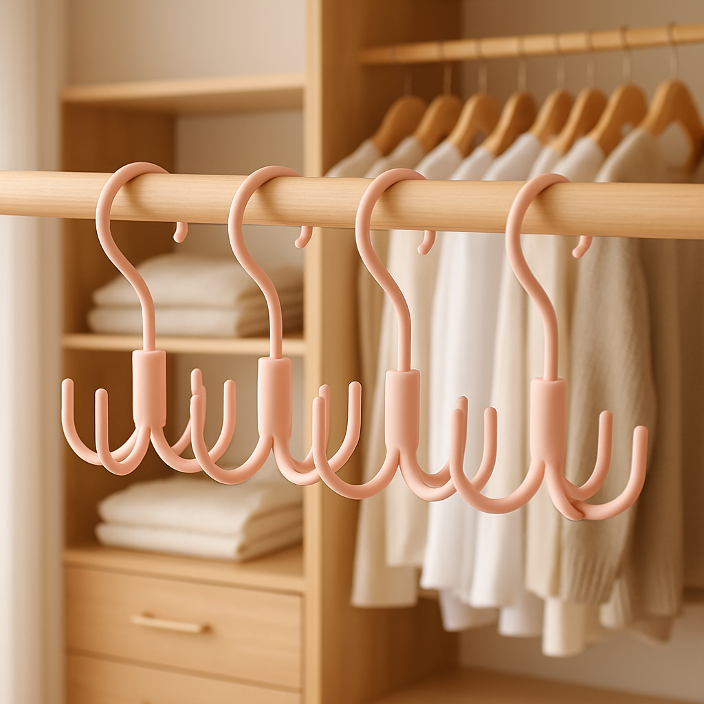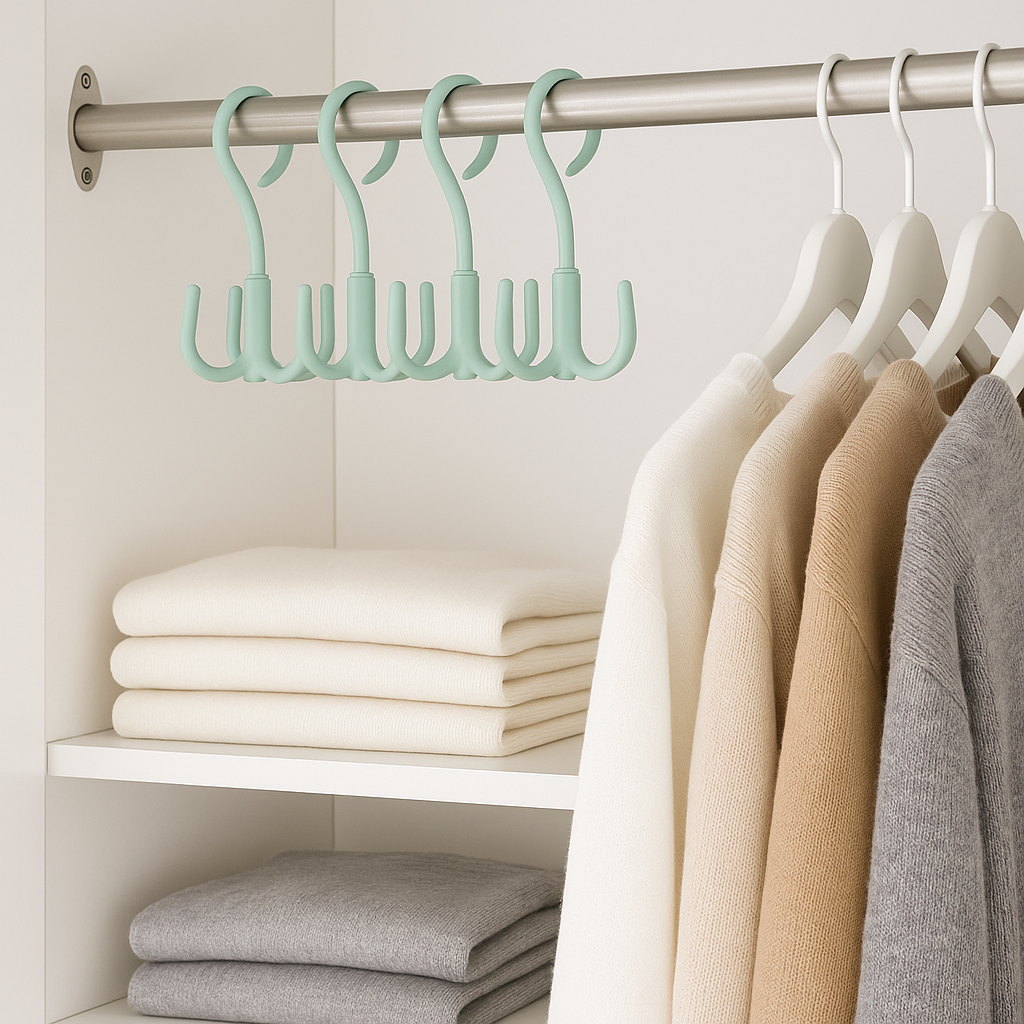 Cintre multifonctionnel avec crochets rotatifs pour un rangement optimal