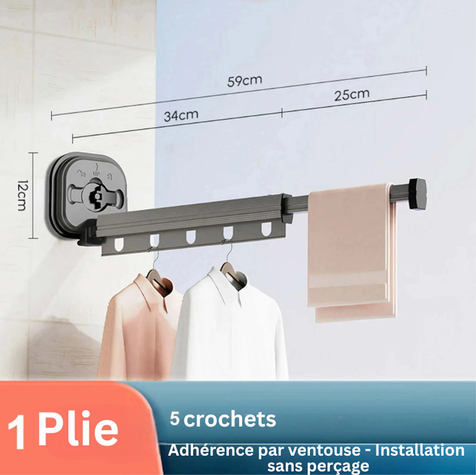 Notre support rétractable change la donne avec sa rotation à 180 degrés et son design pliable. Vous pouvez y accrocher simultanément plusieurs cintres tout en optimisant l'espace disponible.