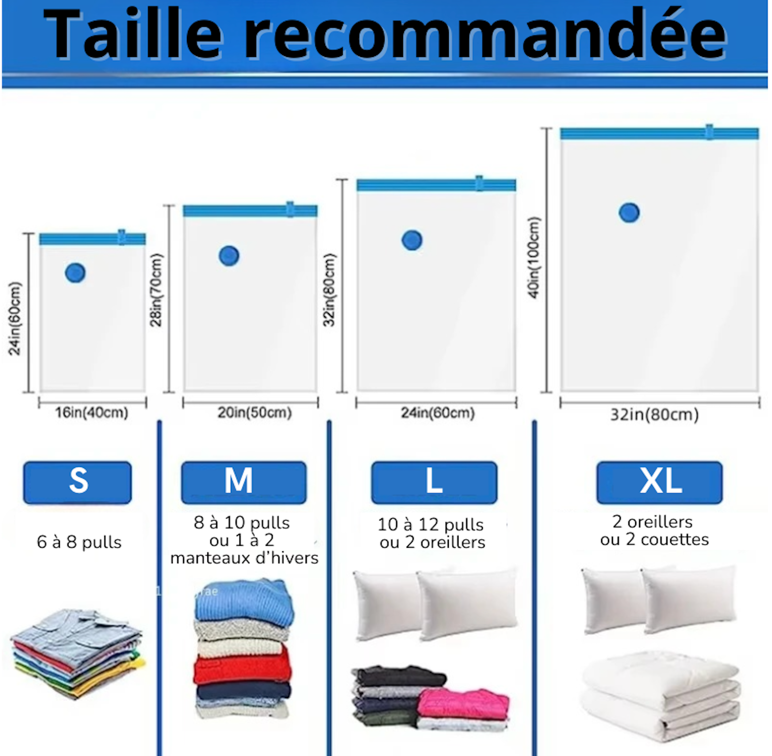 Le manque de place est un problĂšme universel dans nos logements. Avec les sacs sous vide, vous rĂ©duisez instantanĂ©ment le volume de vos textiles jusqu'Ă 75%. Imaginez pouvoir ranger trois fois plus de vĂȘtements dans le mĂȘme espace!